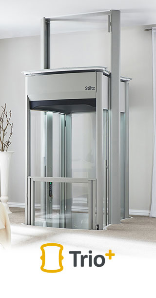 Para famílias maiores ou para aqueles que precisam de mais espaço para, por exemplo, uma cadeira de rodas, o Stiltz Trio+ e a solução ideal. O seu design inteligente oferece uma entrada mais larga para cadeiras de rodas, com as suas guias auto-portantes posicionadas de uma forma inteligente.